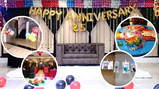 Easy diy anniversary decor here iam showing you how to make an simple and elegant anniversary decor. Can anyone suggest some 25th anniversary party ideas for those on a budget? You can use silver décor elements throughout the touch on the traditional material. Get an anniversary party theme that represents your couple's unique relationship. Their whole journey with all ups and downs.